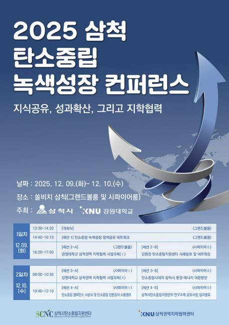 [메이저뉴스]삼척시와 강원대학교가 공동 주최하는 ‘2025 삼척 탄소중립 녹색성장 컨퍼런스’가 오는 12월 9일부터 10일까지 이틀간 쏠비치 삼척에서 개최된다.