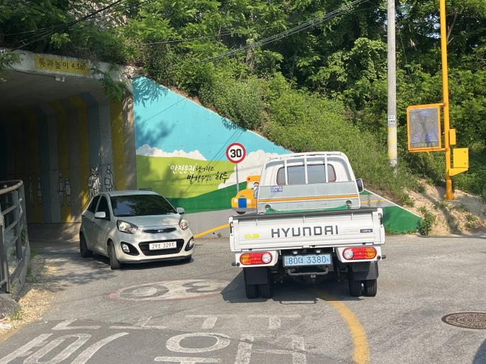 6월 완료된 1호 기금사업은 무실동 삼육초 후문 굴다리 진출입부에 스마트 교통안전시스템을 설치하는 사업이다. 이 구간은 굴다리 구조상 시야 확보가 어려워 차량간 충돌 및 보행자 사고 등 위험 요소가 상존하는 곳이다. 이번 사업을 통해 운전자가 굴다리 진입 전 통행 차량의 유무를 미리 확인할 수 있게 됐다.
