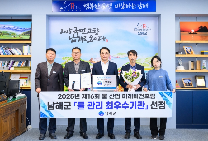[메이저뉴스]남해군은 최근 부산 벡스코에서 열린 ‘2025년 제16회 물 산업 미래비전포럼’에서 ‘물 관리 최우수기관’으로 선정됐다.