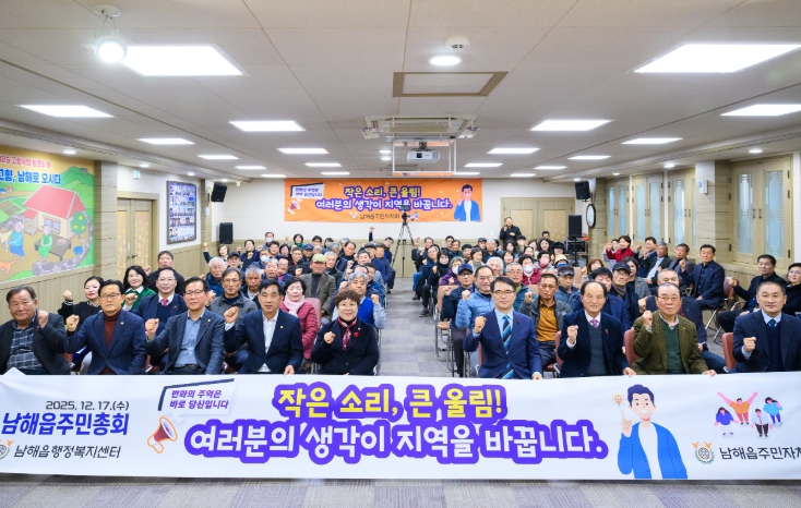 [메이저뉴스] 남해읍 주민자치회(회장 하희택)는 17일 오후 2시, 남해읍행정복지센터 2층 회의실에서 주민과 함께하는 2025년 남해읍 주민총회를 개최했다.