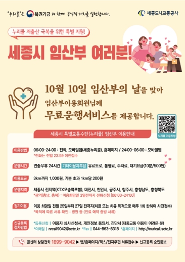 세종도시교통공사, 임산부를 위해 10월 10일 하루 특별교통수단 누리콜 무료 운행