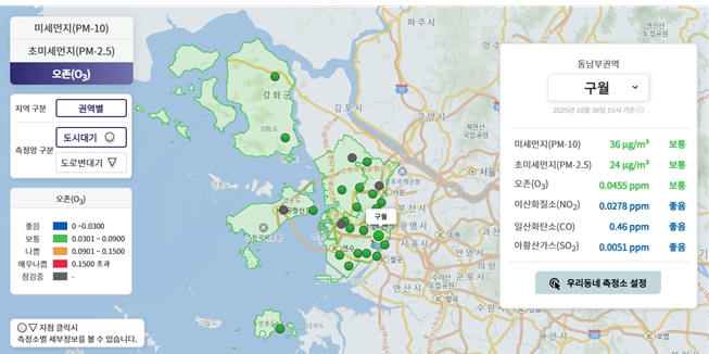 | ▲ 환경정보공개시스템 오존 측정결과 |