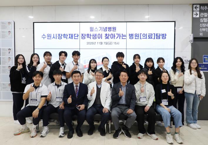 [메이저뉴스]수원시장학재단은 7일 윌스기념병원 인공신장센터 인봉홀에서 청소년·청년 장학생을 대상으로 ‘2025 장학생이 찾아가는 기업(의료)탐방’을 운영했다. 고등학생과 대학생 장학생 20명, 장학재단 이사 등이 함께했다.