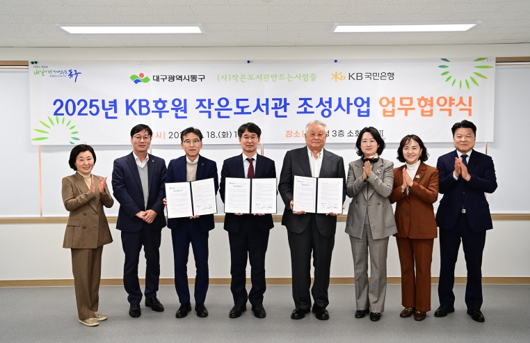 [메이저뉴스]대구 동구청은 지난 18일, KB은행, (사)작은도서관만드는사람들과 ‘작은도서관 조성사업’을 위한 업무협약을 체결했다.