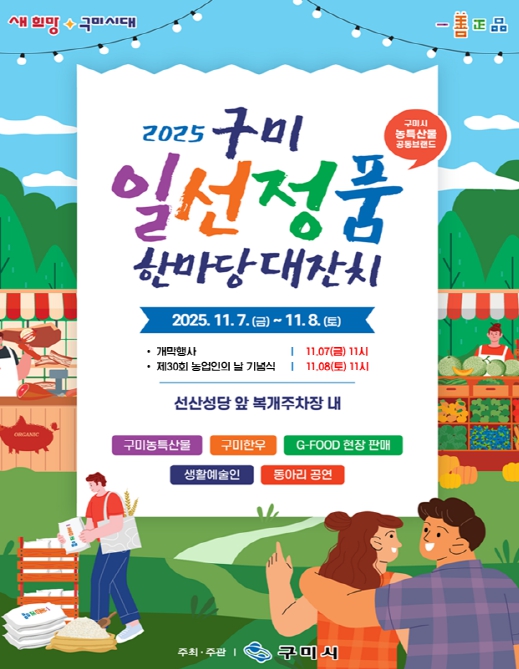 [메이저뉴스]구미시는 11월 7일부터 8일까지 이틀간 선산읍 복개주차장 일원에서 ‘2025 구미 일선정품 한마당 대잔치’를 연다.