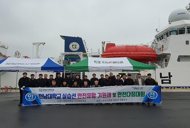[메이저뉴스]전남대학교 수산해양대학(학장 서호영)은 지난 24일 여수 신북항에서 선박실습센터 및 실습선 교직원들이 참석한 가운데, 실습선의 안전 운항과 승선자의 무사 안녕을 다짐하는 ‘전남대학교 실습선 안전기원제 및 안전 다짐 대회’를 개최했다.