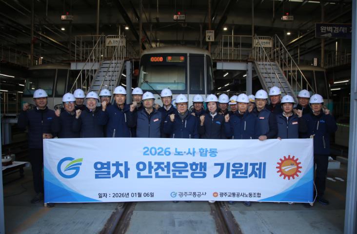 [메이저뉴스]광주교통공사가 6일 광주시 동구 용산차량기지에서 신년 맞이 ‘노사 공동 도시철도 안전 운행 기원제’를 개최하고, 2026년 무사고, 무재해 달성을 위한 강력한 실천 의지를 다졌다.