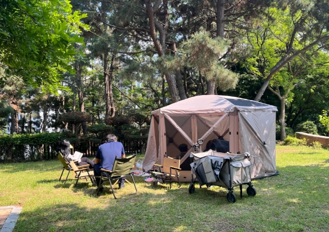 이 프로그램은 매주 토, 일요일 사전에 신청한 가족(1일 최대 6가족)을 대상으로 진행한다. 텐트, 야영(캠핑) 의자, 돗자리 등 야영 장비와 도서, 보드게임, 색칠 도구 등을 무료로 대여해 야외에서 즐기는 이색독서 체험 기회를 제공하고자 마련됐다.