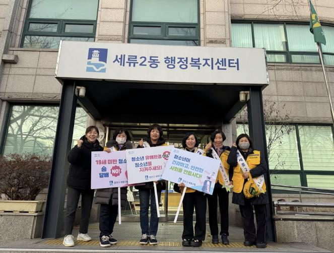 [메이저뉴스]권선구 세류2동은 지난 11일, 연말을 맞아 긴장이 풀어진 청소년들의 비행·탈선행위를 예방하고 청소년 보호 의식 제고를 위해 세지로 일대에서 청소년 지도위원과 함께 청소년 선도·보호 캠페인을 실시했다.