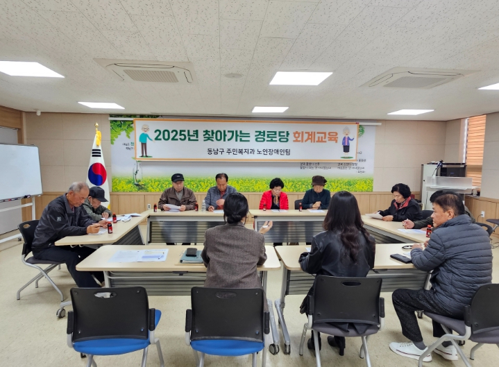동남구는 이날 봉명동 행정복지센터에서 경로당 회장 및 총무를 대상으로 보조금 집행 기준, 회계관리 요령, 정산 절차, 서류 작성 방법 등을 안내했다.