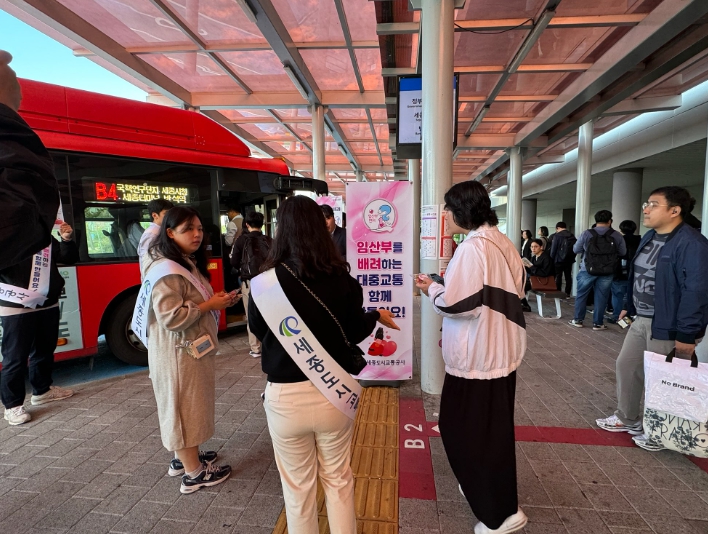 [메이저뉴스]세종도시교통공사는 10월 10일 ‘임산부의 날’을 맞아오송역 버스환승센터에서 임산부 배려 캠페인을 펼쳤다.