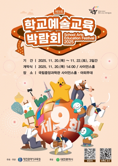 [메이저뉴스]대전시교육청은 11월 20일부터 22일까지 '2025 제9회 학교예술교육박람회'를 국립중앙과학관에서 개최한다고 밝혔다.