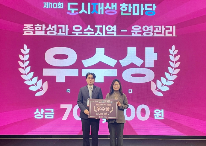 [메이저뉴스]충주시가 10일 오후 5시 서울콘래드 호텔에서 국토교통부가 주최한 ‘2025년 도시재생 종합성과평가 경진대회’의 운영관리 분야 ‘우수상’을 수상했다고 밝혔다.