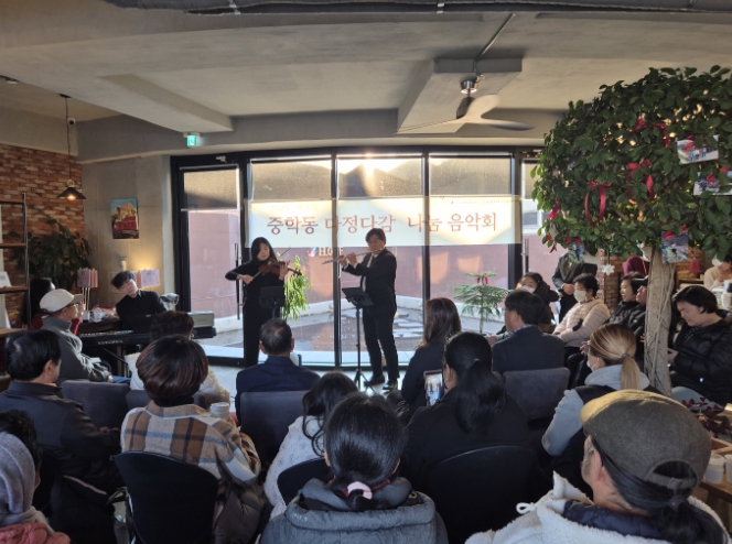 [메이저뉴스]공주시 중학동은 지난 9일 엘로이즈 카페에서 성탄을 앞두고 ‘다정다감 나눔 음악회’를 열었다.