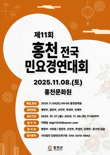 [메이저뉴스]홍천군은 11월 8일 홍천문화원에서 ‘제11회 전국민요경창대회’를 개최한다고 밝혔다.