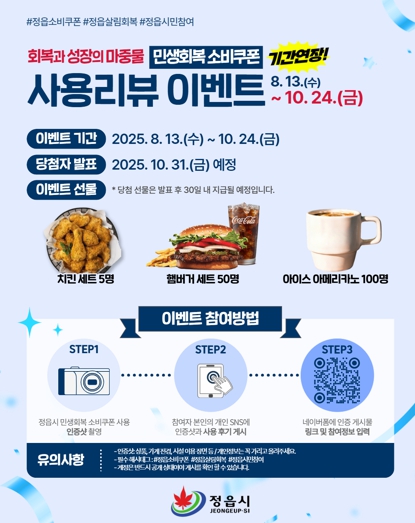 ▲ 정읍시, 민생회복 소비쿠폰 이벤트 24일까지 연장…“참여하고 선물 받으세요” |