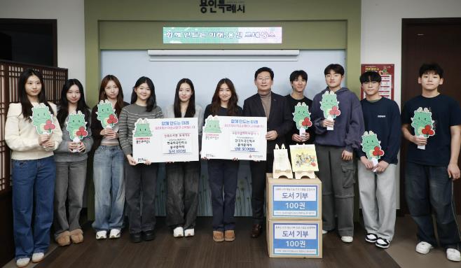 [메이저뉴스]용인특례시는 15일 시장실에서 성복도서관 재능기부 프로그램에 참여 중인 한국외국인학교(KIS) 봉사동아리 벌룬타스(Voluntas)로부터 성금 300만원과 도서 100권을 전달받았다고 16일 밝혔다.