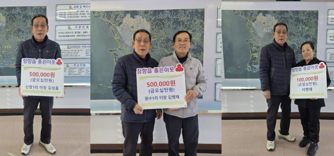 이번 후원에는 김성흠 신창1리 이장이 50만원, 김영재 원수1리 이장이 50만원, 이병애 씨가 10만원을 기부해 총 110만원의 성금이 모였다.