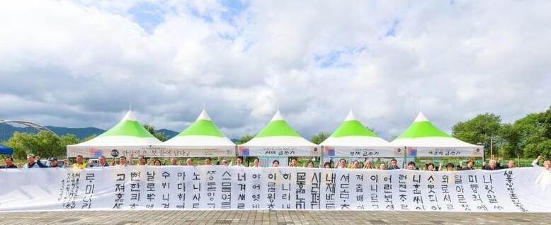 특히 길이 수십 미터에 달하는 대형 천 위에 붓으로 ‘훈민정음 서문’을 쓰는 서예 퍼포먼스가 펼쳐져 세종대왕의 뜻을 되새기며 큰 호응을 얻었다.