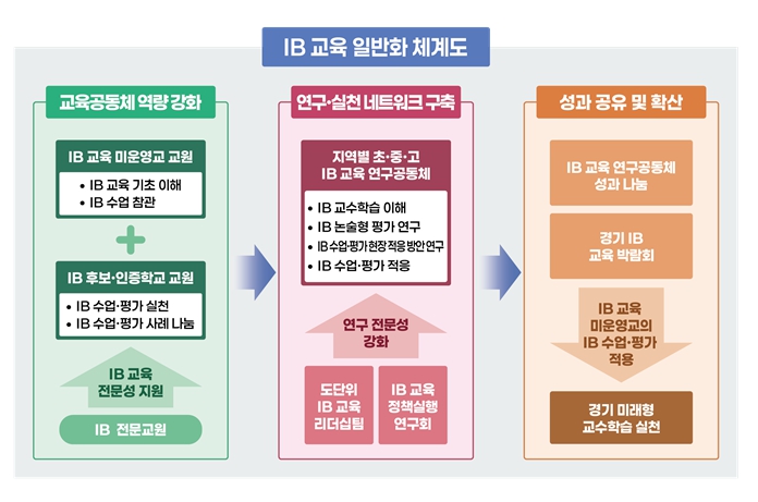 특히 ‘IB 전문교원’과 ‘IB 월드스쿨(인증학교)’를 핵심 실행 기반으로 삼아 ‘IB 교육’의 일반화에 나선다.