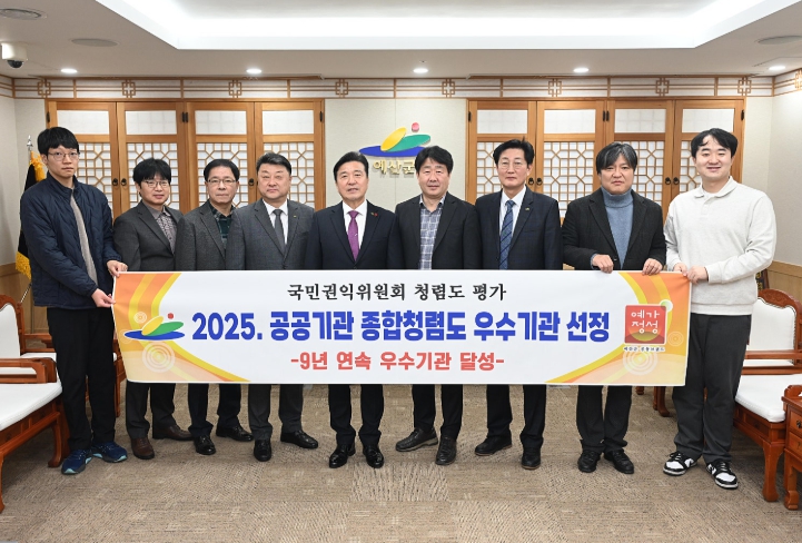 [메이저뉴스] 예산군은 국민권익위원회가 주관한 ‘2025년도 공공기관 청렴도 평가’에서 종합청렴도 2등급을 획득하며 9년 연속 우수기관을 달성했다고 밝혔다.
