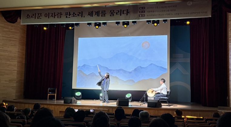 [메이저뉴스]세종특별자치시교육청은 12월 23일에 2층 대강당에서 학생과 학부모, 교직원 등 세종 교육공동체를 대상으로 ‘2025년 우리동네 예술학교 예술명사 초청프로그램 소리꾼 이자람: 판소리, 세계를 울리다’를 성황리에 마쳤다.