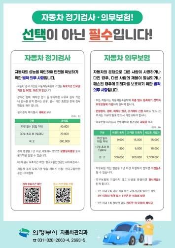 [메이저뉴스]의정부시는 자동차 정기(종합)검사와 의무보험 가입 등에 대한 지속적인 홍보를 전개하고 있다.