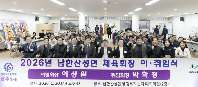 이번 이·취임식에서는 남한산성면 체육회 발전에 기여해 온 이상원 회장(남한산성면 이장협의회장)이 이임하고 박학정 회장(광주시 장애인체육회 부회장)이 신임 회장으로 취임했다.