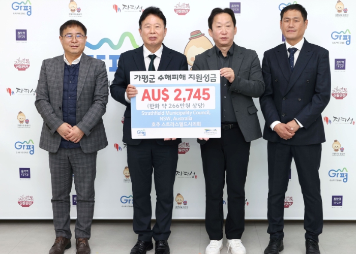 [메이저뉴스]가평군과 호주의 6·25전쟁 참전을 통한 특별한 인연이 수해 복구 지원을 통해 다시 한번 확인됐다. 가평군은 자매도시인 호주 뉴사우스웨일스주 스트라스필드시가 지난 7월 발생한 가평지역 집중호우 피해와 관련, 깊은 위로의 뜻과 함께 성금을 전달했다고 8일 밝혔다.