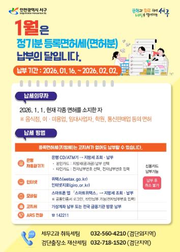 | ▲ 인천 서구, 1월은 정기분 등록면허세(면허) 납부의 달 안내 |