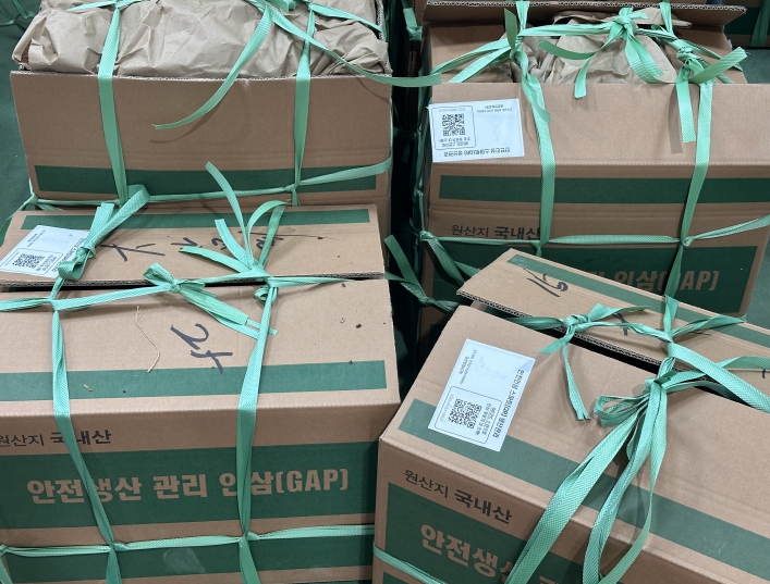 | ▲ 큐알(QR)라벨이 부착된 인삼 박스 |