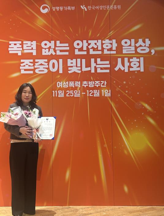 이날 진행된 시상식에서 이정숙 소장(2024년~현재)은 아동‧여성 폭력 방지 및 피해자 지원에 앞장서고, 각종 캠페인과 홍보 활동으로 폭력 예방을 위해 힘써 온 공로를 인정받아 장관 표창을 수상하게 됐다.