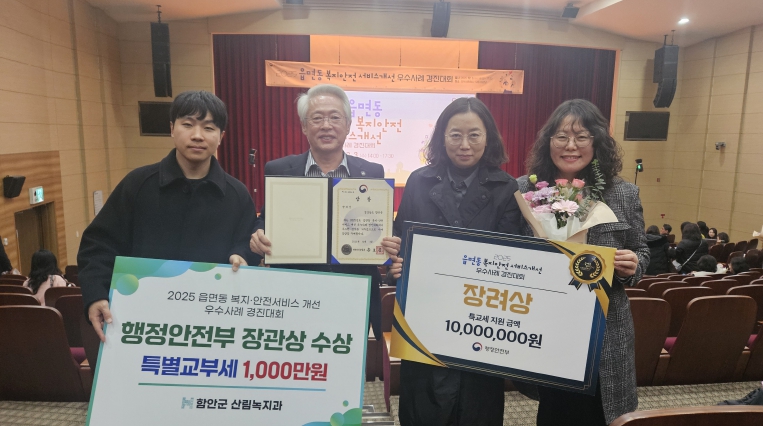 [메이저뉴스]함안군은 지난 3일 행정안전부가 주관한 ‘2025년 읍면동 복지·안전서비스 우수사례 경진대회’에서 장려상을 수상했다고 밝혔다.