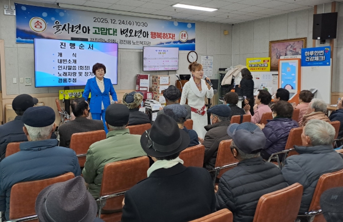 [메이저뉴스]강진군 강진읍노인회(회장 김승복)가 지난 24일 강진읍 노인복지관 2층 강당에서 150여명의 어르신들이 참석한 가운데 2025년 송년행사를 성대히 마쳤다.