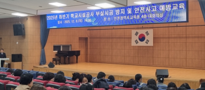 [메이저뉴스]인천광역시교육청은 8일 관내 각급학교 행정실장, 시설 공사 담당 공무원, 공사현장 관계자 등 600여 명을 대상으로 ‘2025년 하반기 학교시설공사 부실시공 방지 및 안전사고 예방 교육’을 실시했다.