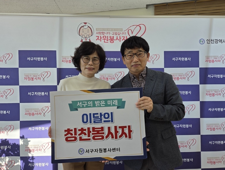[메이저뉴스]인천서구자원봉사센터는 지역사회 발전을 위해 여러 분야에서 다양한 봉사활동에 참여한 자원봉사자를 격려하고 자원봉사 문화를 확산하기 위한 “자원봉사 칭찬릴레이”를 매월 실시하고 있다.