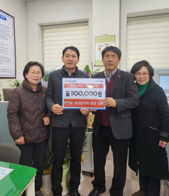 문채환 동장은 “본업으로 바쁜 와중에도 마을의 궂은일을 마다하지 않고 헌신해 주시는 통장님들께 깊은 감사를 드린다”며, “보내주신 소중한 성금은 소외된 이웃이 없는 살기 좋은 만덕동을 만드는 데 뜻깊게 사용하겠다”고 화답했다.