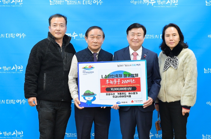 [메이저뉴스]제52회 LA한인축제 및 농수산물 우수상품 엑스포에 참가한 여수지역 4개 업체가 지난 17일 어려운 이웃들을 위해 직접 생산·가공한 멸치, 젓갈, 굴비 장아찌, 갓김치로 구성된 천만 원 상당의 물품을 여수시에 전달했다.