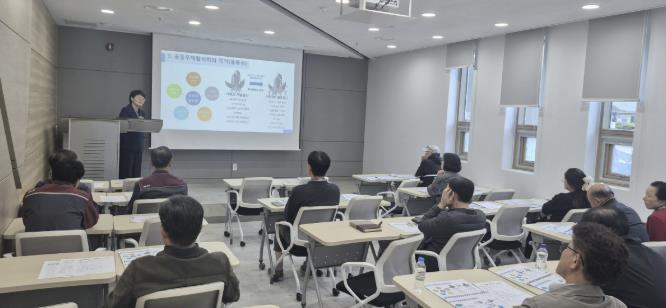 이날 교육에는 경기도 공동주택관리 자문위원을 초청해 층간소음 분야와 공동체 활성화 분야를 중심으로 강의를 진행했다.