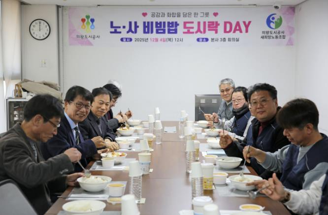 [메이저뉴스]의왕도시공사는 12월 4일 노사 간 협력과 소통을 강화하고 건강한 조직문화 확산을 위한 ‘노·사 비빔밥 도시락데이’ 행사를 개최했다고 밝혔다.