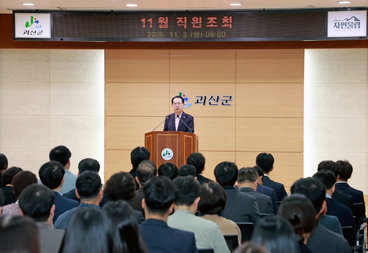 [메이저뉴스]충북 괴산군은 3일 군청 대회의실에서 11월 직원조회를 열고, 올해 지역축제의 성과와 연말까지 중점 추진할 과제들을 공유했다.