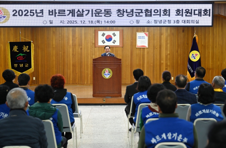 [메이저뉴스]바르게살기운동 창녕군협의회(회장 곽철현)는 지난 18일 창녕군청 대회의실에서 ‘2025년 바르게살기운동 회원대회’를 개최하며 한 해를 마무리하는 뜻깊은 시간을 가졌다.