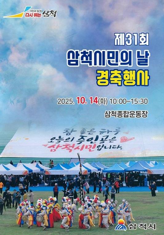 [메이저뉴스]삼척시민의 단결과 화합, 애향심과 자긍심을 고취하기 위한 제31회 삼척시민의 날 기념 경축 행사가 오는 10월 14일 오전 10시 삼척종합운동장에서 열린다.