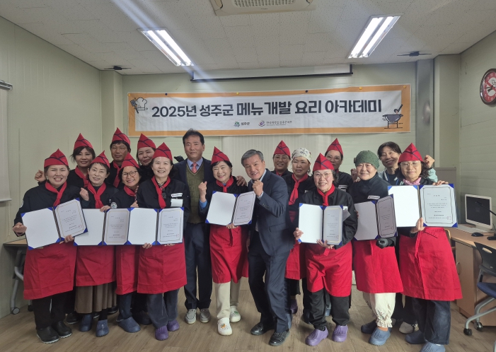 [메이저뉴스]성주군은 19일 성주군농업기술센터 조리실습장에서 일반음식점 영업자 20명을 대상으로 운영한 ⌜2025년 외식업 영업자 메뉴개발 요리아카데미⌟ 수료식을 가졌다.