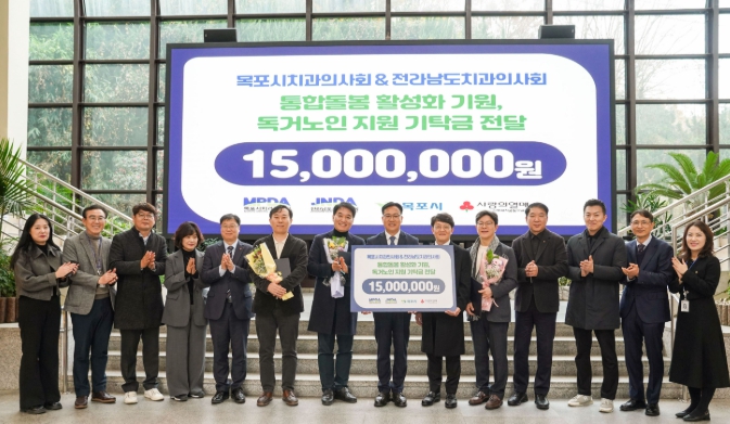 [메이저뉴스]목포시는 지난 4일, 목포시치과의사회와 전남치과의사회가 통합돌봄 활성화를 기원하며 홀로 사는 어르신 지원 기탁금 1,500만 원을 전달했다고 밝혔다.