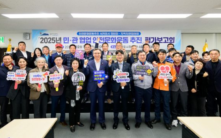 [메이저뉴스]서귀포시는 12월 19일 10시 시청 별관 4층 별넷마당에서 오순문 서귀포시장을 비롯해 교육지원청‧경찰서‧자치경찰단‧소방서‧해양경찰서 등 유관기관장과 오창훈 시 주민자치위원회협의회장, 시민사회단체장 등 안전문화운동추진 서귀포시협의회 위원 30여 명이 참석한 가운데 ‘2025년도 민‧관협업 안전문화운동 추진 평가보고회’를 개최했다.