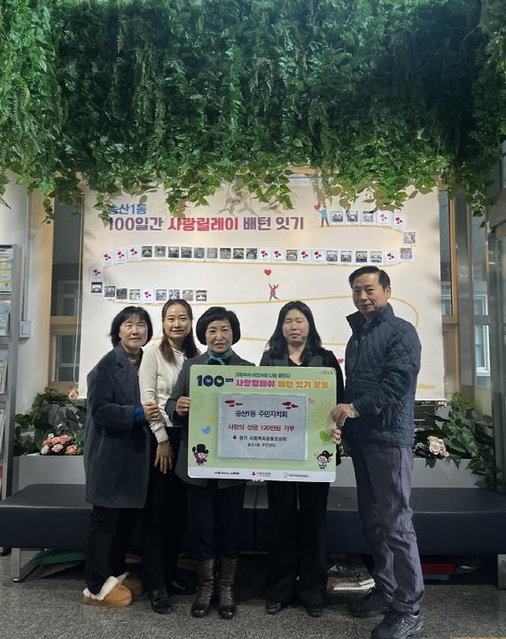 [메이저뉴스]의정부시 송산1동주민센터는 12월 11일 송산1동 주민자치회가 성금 120만 원을 기탁하며 ‘100일간 사랑릴레이 배턴 잇기’에 동참했다고 밝혔다.