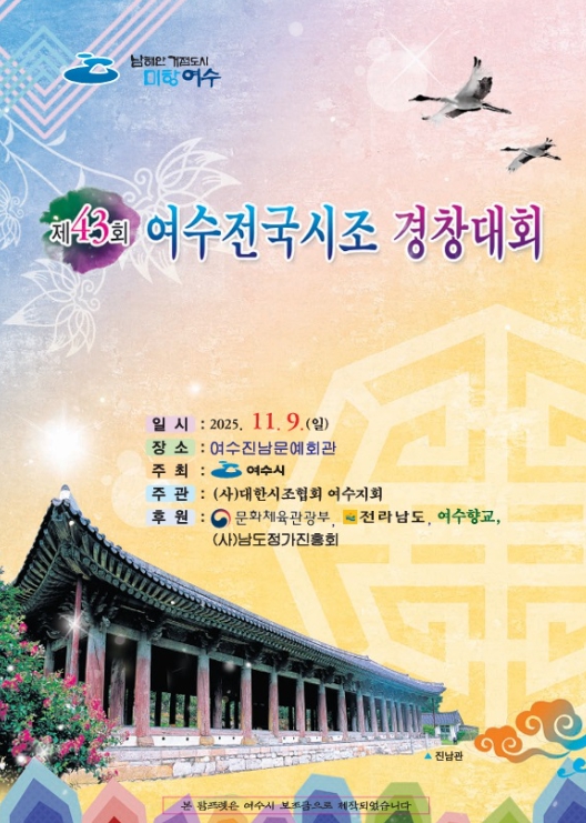 [메이저뉴스]여수시는 오는 11월 9일 오전 9시 진남문예회관에서 ‘제43회 여수 전국시조경창대회’를 개최한다.