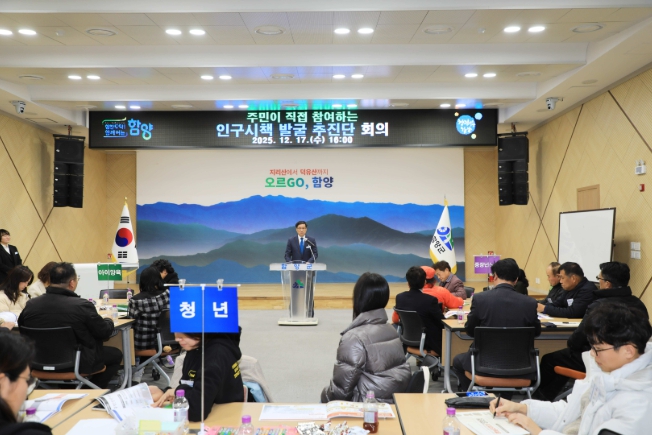 [메이저뉴스]함양군은 17일 오후 4시 군청 대회의실에서 저출생, 고령화, 청년 유출 등 당면한 인구감소 문제의 해법을 모색하기 위한 ‘주민이 직접 참여하는 인구시책 발굴 추진단’을 운영했다.