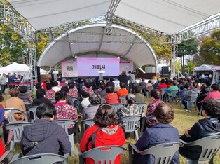 별량면 주민자치회가 지난 5월 주민과 학생, 소비자단체 등 200여 명이 함께 모내기에 참여해 조성한 논 아트가 유색벼 고유의 색을 드러내며 주민과 방문객들에게 볼거리를 제공하며 2023정원박람회를 홍보하고 있다.